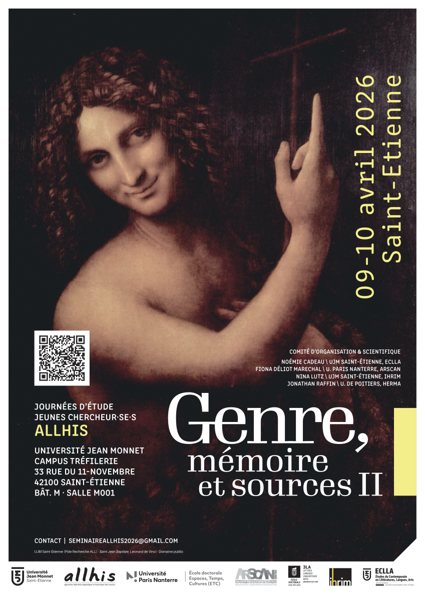 - À la suite d’un premier volet particulièrement fructueux organisé en avril 2025, la Structure Fédératrice de Recherche ALLHiS souhaite poursuivre les réflexions sur les rapports entre le genre et la mémoire dans les sources, tout en élargissant les problématiques. L’objectif de ces journées est de faire dialoguer le genre et la mémoire, deux concepts centraux pour le renouvellement critique des sciences humaines et sociales et des études culturelles. Cette manifestation interdisciplinaire, à l’intersection des Gender studies et des Memory studies explore les applications de ces outils critiques, d’un point de vue méthodologique et historiographique, au prisme de sources plurielles, de l’Antiquité à nos jours. Ces journées d’étude portent aussi une ambition de réactualisation critique, en offrant un panorama des nouveaux objets émergents dans la recherche contemporaine en France et à l’international, grâce aux théories sur le genre et la mémoire.
